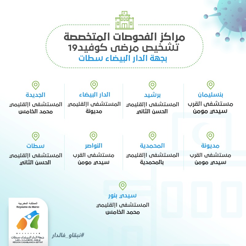 مراكز الفحوصات المتخصصة تشخيص مرضى كوفيد -19 بجهة الدار البيضاء-سطات